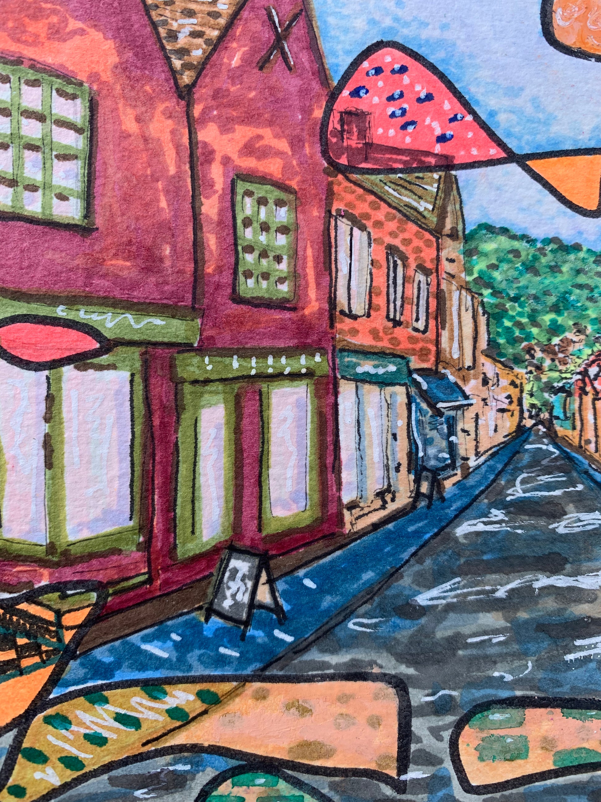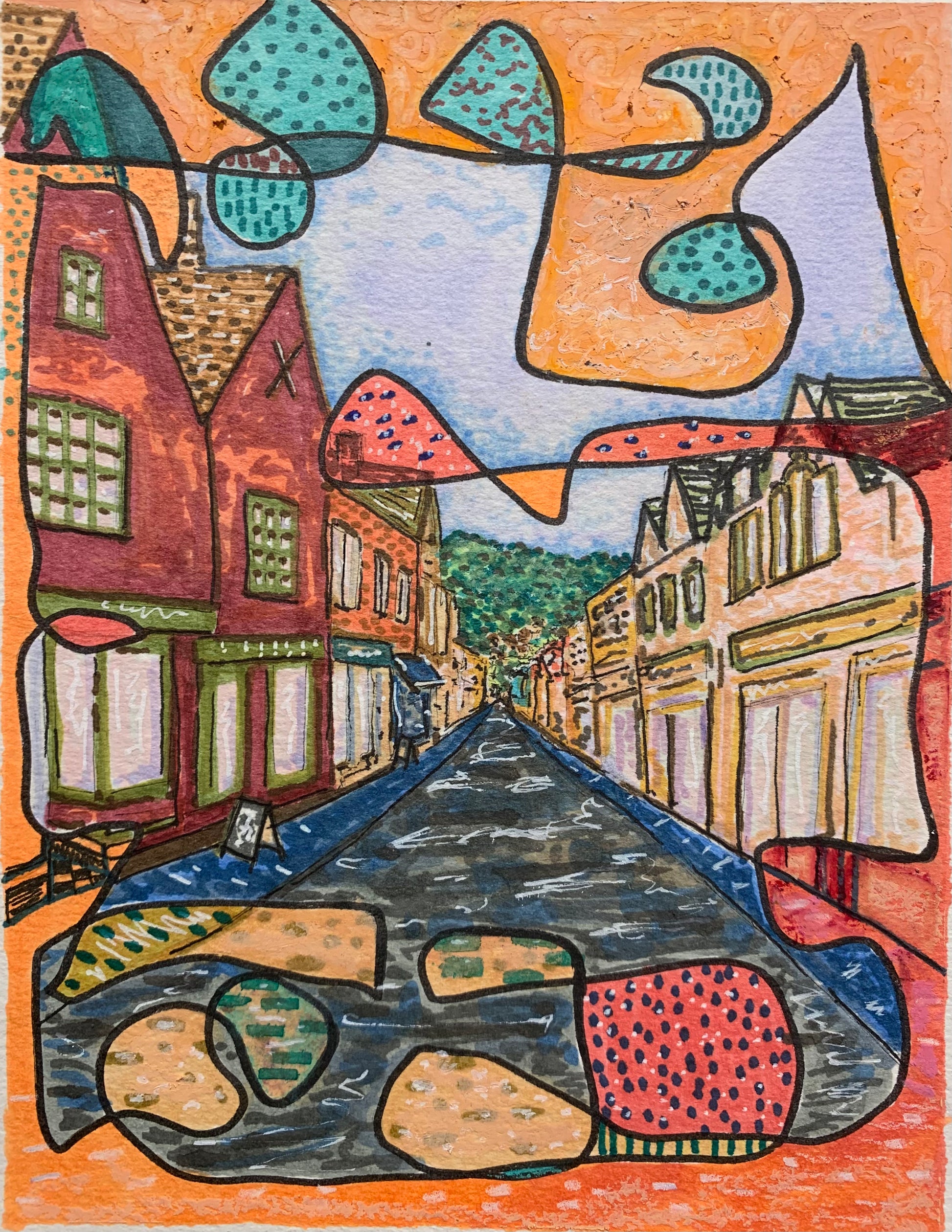 Wotton Under Edge High Street, Mixed Media 2024 9" x 7"